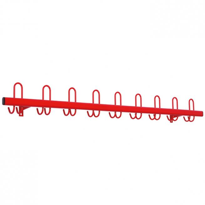 Die praktischen Wand-Garderoben schaffen Ordnung auf jedem Gang. Denn hier finden Jacken, Schals und Turnbeutel einen geeigneten Aufbewahrungsplatz. Die gesamte Garderobe ist aus Stahl hergestellt, alle Teile sind fest miteinander verschweißt. Dank der guten Verarbeitung ist die Schüler-Wandgarderobe besonders stabil und hält dem Schulalltag sicher stand. Für noch mehr Sicherheit sorgen die abgerundeten und nach hinten gerichteten Haken. Die Garderobe ist wahlweise mit 12 oder 18 Rundstahl-Haken ausgestattet, je nach Länge: 1 m = 12 Haken - 1,5 m = 18 Haken.