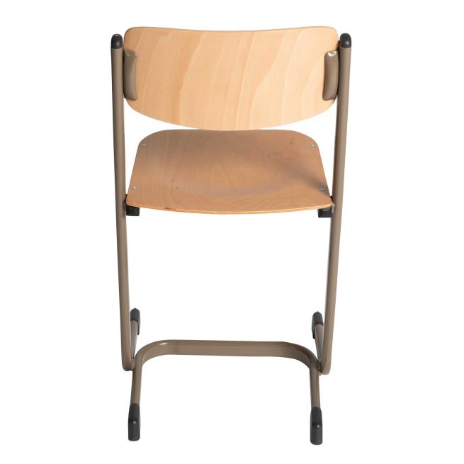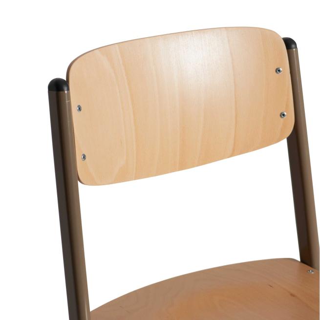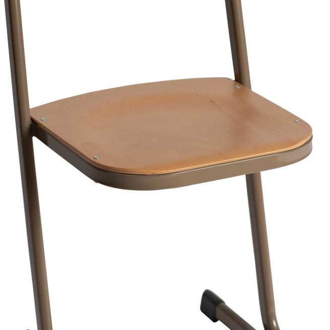 Die Sperrholz-Sitzschale hat eine eingelassene Sitzmulde, die das Sitzen auf dem Stuhl angenehmer macht. Diese ist ergonomisch der Körperform angepasst. Besonders stabil ist der Rahmen mit Doppel-U-Fuß. Er ist extrem formstabil und einbrennpulverbeschichtet. Schutzkappen an den Füßen runden das Gesamtbild ab.