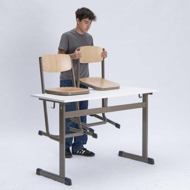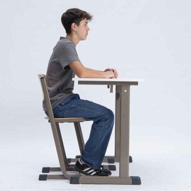 | Größe und Kennfarbe | Mittlere Körpergröße | Stuhl- Sitzhöhe | Tischhöhe | Nummerierung nach DIN ISO 5970 |