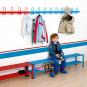 Nasse und schmutzige Straßenschuhe im Gruppenraum müssen nicht sein! Straßenschuhe bleiben einfach draußen im Schuhregal, saubere Schuhe halten Ihre Räume hygienisch! Die obere Fläche bietet eine praktische Sitzbank mit einer Höhe von 30 cm.