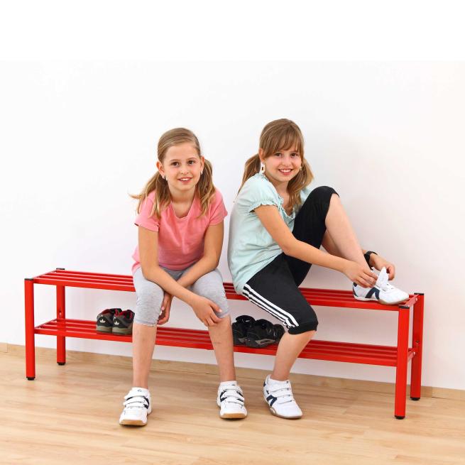 Nasse und schmutzige Straßenschuhe im Gruppenraum müssen nicht sein! Straßenschuhe bleiben einfach draußen im Schuhregal, saubere Schuhe halten Ihre Räume hygienisch! Die obere Fläche bietet eine praktische Sitzbank mit einer Höhe von 40 cm.