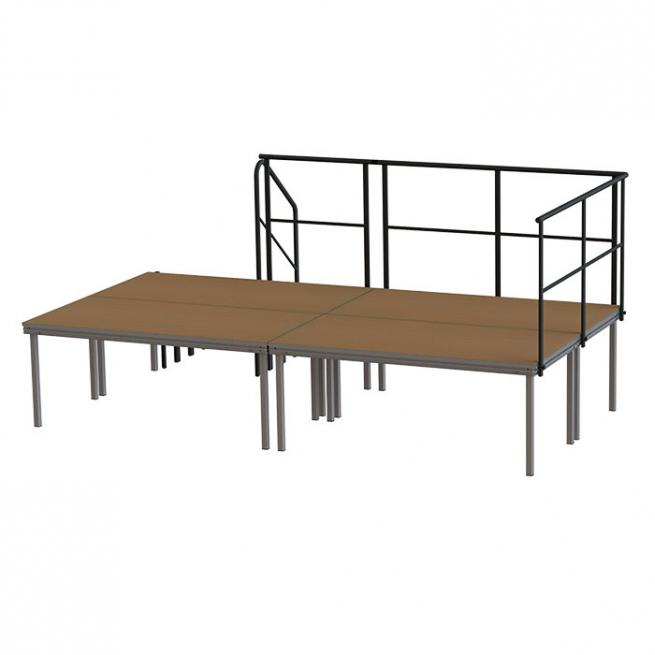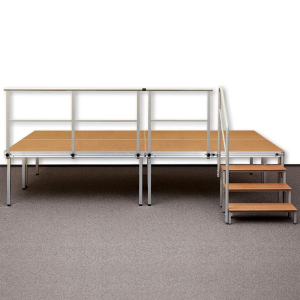 Schulbühne mit Treppe Komplett-Set für Innenraum, Tischlerplatte mittelbraun