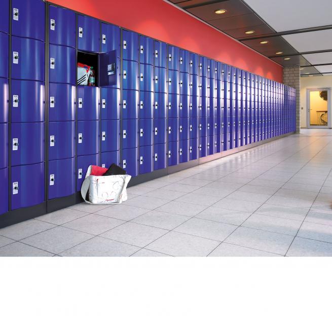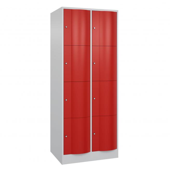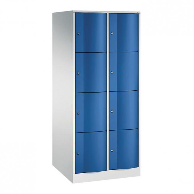 Schließfachschränke mit robusten Spezialtüren. 2 Reihen, 4 Fächer übereinander. Pro Tür ein Zylinderschloss mit 2 Schlüsseln.
