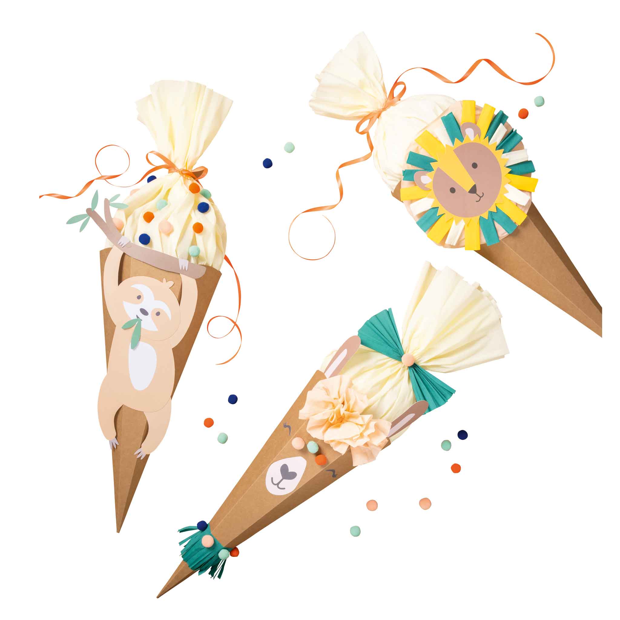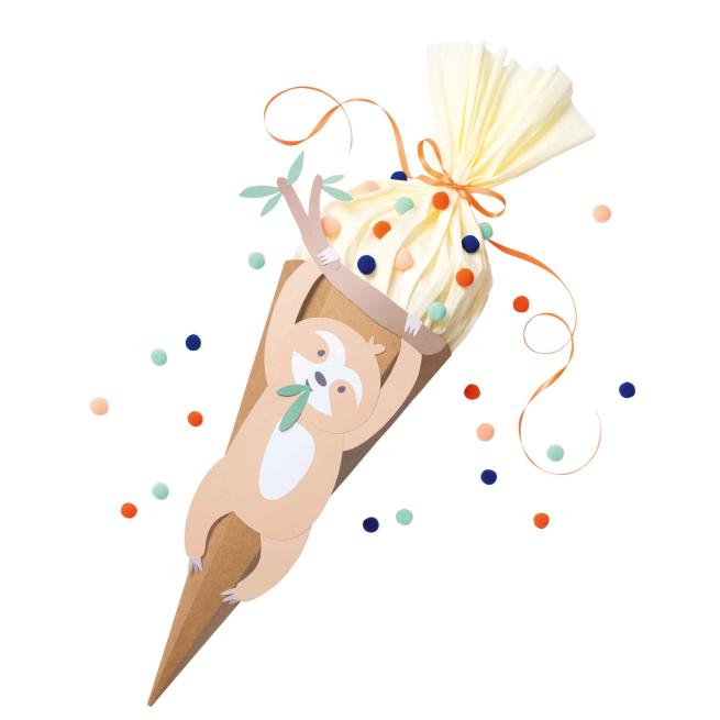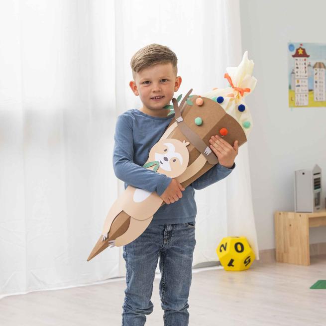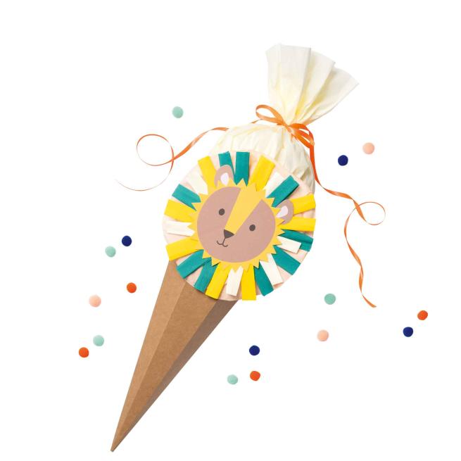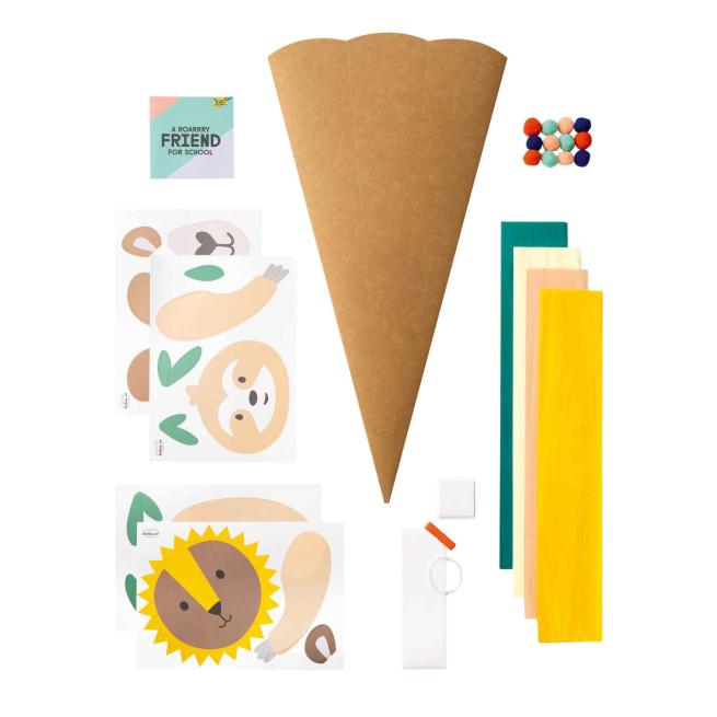 Mit dem tierisch-vielseitigen Schultüten-Bastel-Set „Safari School“ gehen Ihre Kinder zum Schulstart auf kreative Abenteuer-Reise. Das Set umfasst die 3 Motive „Löwe“, „Lama“ und „Faultier“, von welchen sich die Kinder ihren Favoriten aussuchen. Mithilfe der zu diesem passenden Materialien gestalten die Kids anschließend und gemeinsam mit Ihnen ihre eigene, individuelle Schultüte. Die unterschiedlichen Motive lassen sich ebenfalls ganz nach Belieben vermischen und zu weiteren, großartigen Eigenkreationen zusammensetzen. Die Kids erfinden ihre persönlichen Safari-Abenteuer und bringen sie auf abwechslungsreiche Weise auf Schultüten-Format.Lebhaft gestaltete Schultüte in vielen bunten Farben