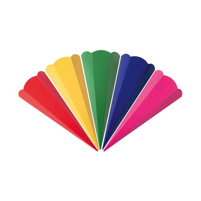 10 Schultüten-Rohlinge in Rot, Gelb, Pink, Blau und GrünProduktdetails
