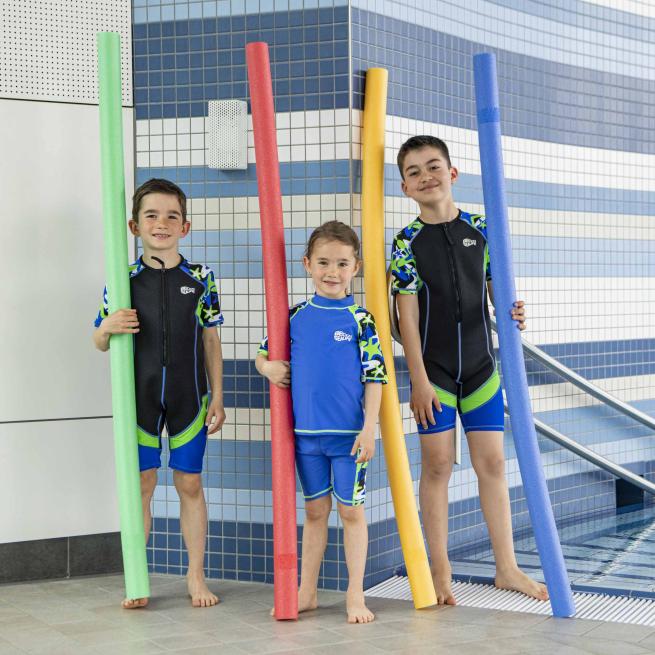 Wir verwenden vorerst die Schwimmnudeln als Abstandsmesser für die Corona-Vorgaben!