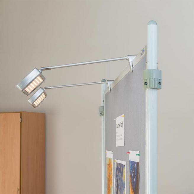 Damit Ihre Ausstellung auch bewundert werden kann, muss manchmal mit guter Beleuchtung nachgeholfen werden. Mit dem dreh- und schwenkbaren Leuchtenkopf finden Sie die richtige Ausleuchtung für jedes Bild. 66 Hochleistungs-LEDs mit einer Leistung von 16 Watt leuchten in neutralem Weiß und lassen die Ausstellungsfläche hell erstrahlen. Mit der Displayklemme positionieren Sie die Leuchte nach Belieben oben an der Wand.
