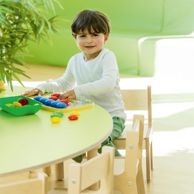Speziell für Kinder U3 konzipiert. Diese Tischserie aus Birkenholz zeichnet sich durch ihre stark abgerundeten Ecken aus. Die Kleinen sind vor Stoßverletzungen geschützt und essen, sitzen oder spielen gern auch mal am Tisch. Die Tischplatte aus Birke-Multiplex ist dank beidseitiger Beschichtung besonders kratzfest. Stabilen Halt haben die Tische dank der Beine aus geöltem Birken-Massivholz. Zudem schützen die integrierten Gleiter Gehör und Boden. Nutzen Sie die wendbaren Gleiter je nach Boden entweder mit der Filz- oder Kunststoffseite. Kombinieren Sie die Tische nach Lust und Laune – die hellen Tischplattenfarben geben Ihrer Einrichtung einen frischen Look.