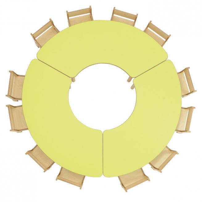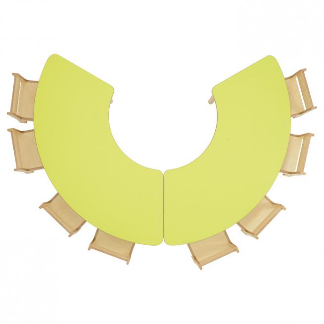 - Segmenttisch: Innenradius 40 cm, Außenradius 95 cm, Tiefe der Tischplatte 55 cm