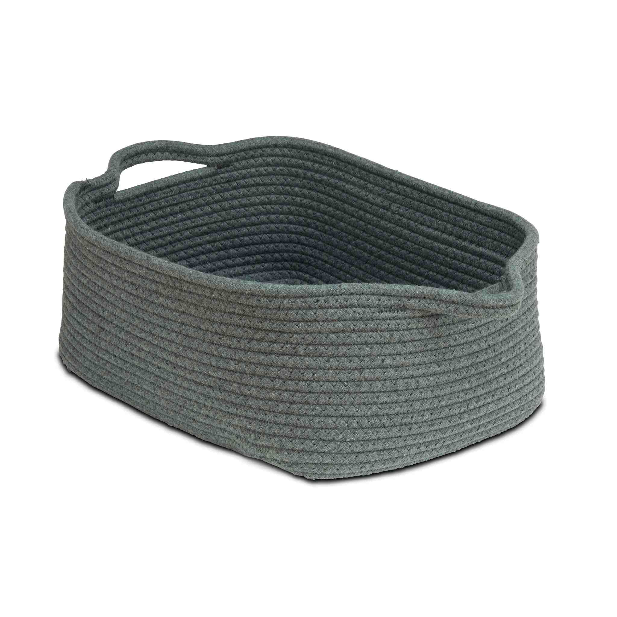 Weiche und flexible Konstruktion aus robustem Seil. Mit praktischen Tragegriffen. Die Körbe in Naturoptik bestehen aus 100 % Jute, Körbe in Hell- und Dunkelgrau aus 100 % Baumwolle, Handwäsche.