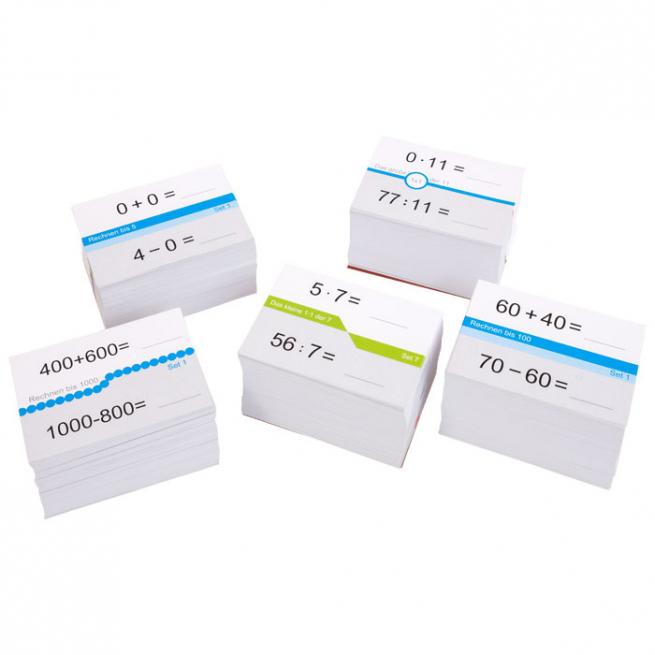 Ob zur Stationenarbeit oder für Freistunden – mit der Selbstlernkartei und den jeweils 144 Kateikarten trainieren Ihre SuS 5 der wichtigsten Mathe-Grundlagen: das große 1 x 1, das kleine 1 x 1, den Zahlenraum bis 20, den Zahlenraum bis 100 und den Zahlenraum bis 1000. Jede Aufgabe steht auf der Vorder- und jede Lösung zur Selbstkontrolle auf der Rückseite.