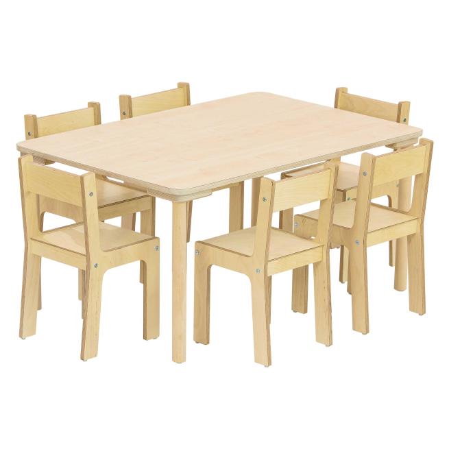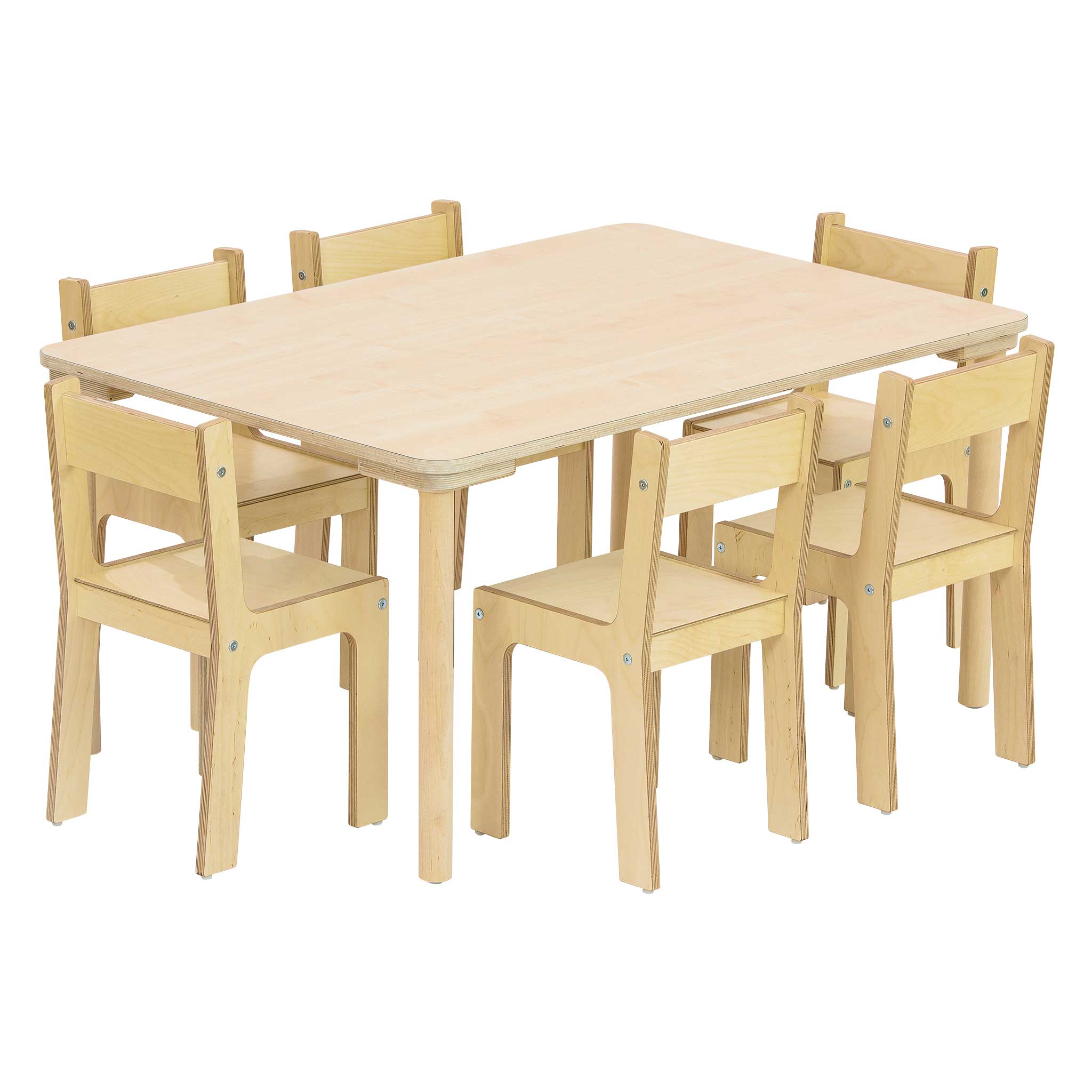Wählen Sie Ihr gewünschtes Tisch-Set Baccus ganz nach Ihrem Bedarf bzgl. Plattenfarbe, Tischhöhe und bei den Rechtecktischen auch die Tiefe. Die Baccus-Kombinationen sind speziell für Kinder U3 konzipiert. Die Tischserie aus Birkenholz zeichnet sich durch ihre stark abgerundeten Ecken aus. Die Kleinen sind vor Stößen geschützt und essen, sitzen oder spielen gern auch mal am Tisch. Die Tischplatte aus Birke-Multiplex ist dank beidseitiger Beschichtung besonders kratzfest und gibt Ihrer Einrichtung durch die hellen Farben einen frischen Look. Die Tischbeine aus geöltem Birken-Massivholz geben stabilen Halt. Zudem schützen die integrierten Gleiter Gehör und Boden. Nutzen Sie die wendbaren Gleiter je nach Boden entweder mit der Filz- oder Kunststoffseite.
