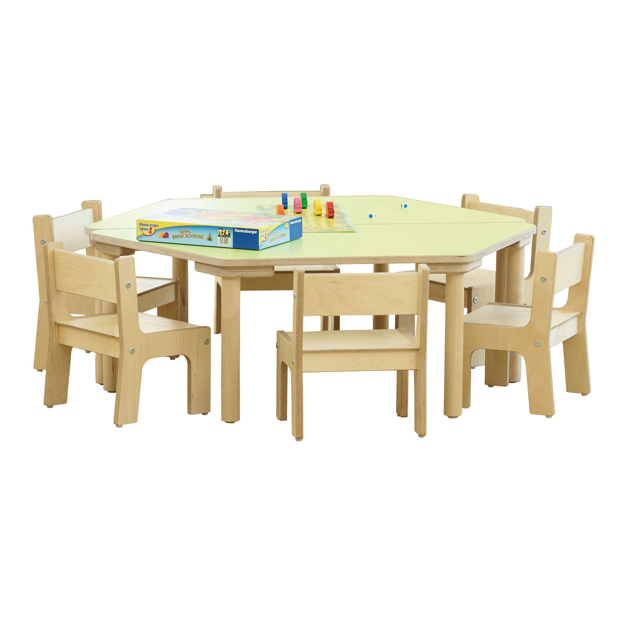 • Tischhöhen wählbar, auch für Krippenkinder• abgerundete Ecken & Tischkanten