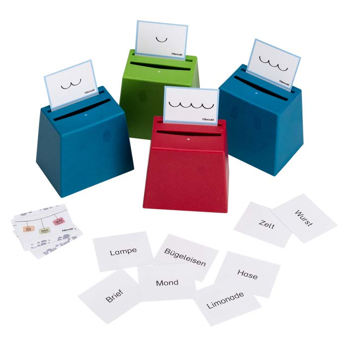 Sortierspiel für die Becherquizzer (nicht enthalten) mit 4 Silbenkarten und 116 Wortkarten. Ein bis viersilbige Wörter verstehen Kinder mithilfe des Sortierspiels für die Becherquizzer leichter. In die Kerbe der Becherquizzer stecken die Kinder die Silbenkarten. Dann ordnen sie die Wortkarten den Silbenkarten zu und stecken diese in den jeweiligen Becherquizzer. Für die Selbstkontrolle prüfen die Kinder, ob das Lösungsmuster am Rand der Aufgabenkarte mit dem der entsprechenden Wortkarten übereinstimmt. Optimal auch für die Freiarbeit oder das Stationenlernen.