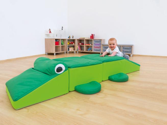 Sensomotorik aufgepasst! Krabbeln und Laufen werden durch das Krokodil zu einer erstaunlichen Erfahrung. Die vier Stoffbausteine sind mit Kissen versehen, die mit kleinen Kügelchen gefüllt sind, ebenso wie die Füße des Krokodils. Wie fühlt sich das an? Das Krokodil sieht nicht nur toll aus, sondern fördert so auch den Tast- und Gleichgewichtssinn sowie die Motorik Ihrer Kinder.