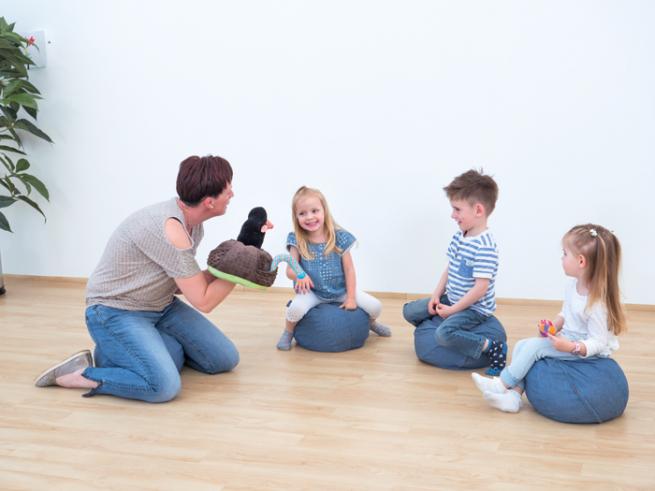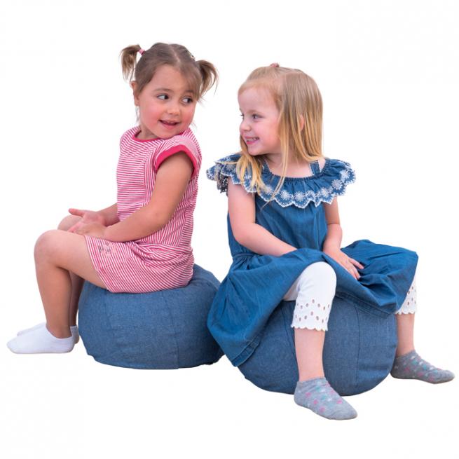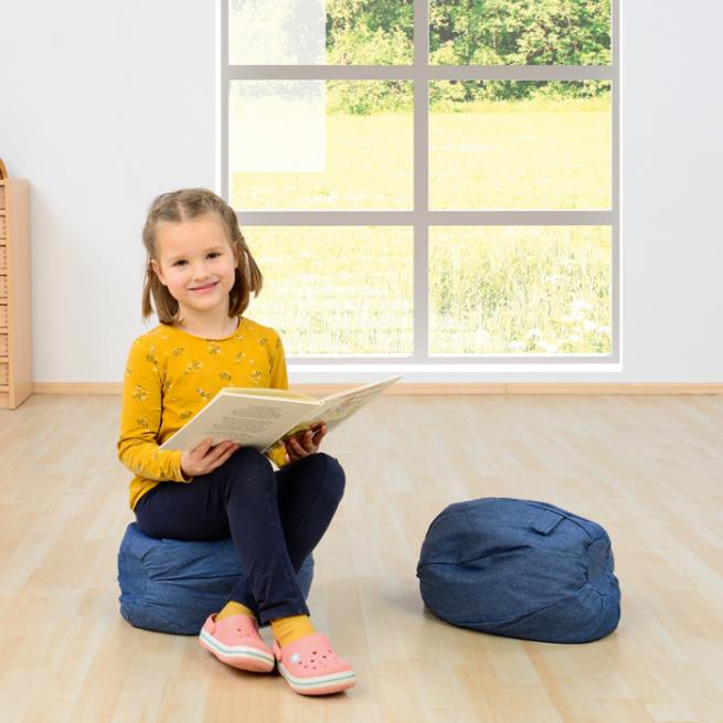 Auf dem Sitzball in zeitloser, robuster Jeans-Optik sitzen Ihre Kinder gemütlich. Die Füllung aus Styroporkügelchen passt sich optimal ihrer Sitzposition an, sodass sie die Balance nicht verlieren. Am praktischen Griff tragen die Kinder den leichten Sitzball von A nach B.