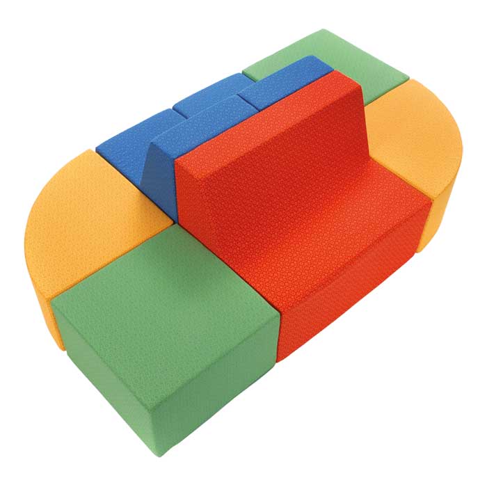 Die Elemente haben einen besonders hochwertigen Schaumstoffkern (RG25/40). Dadurch bleiben die Elemente auch bei großen Kindern stabil. Die Unterseiten sind aus rutschfestem Turnmattenstoff (100 % PU, Polyurethan).