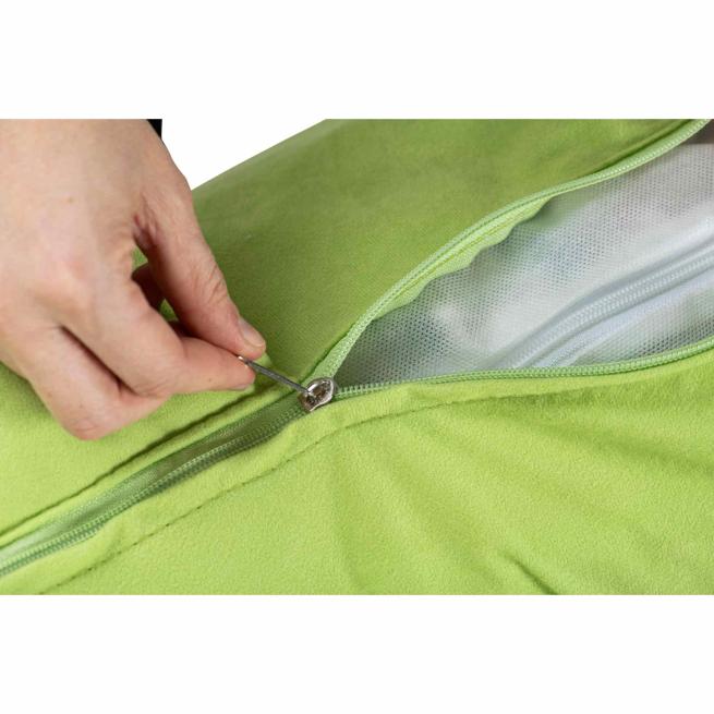 Der Bezug besitzt einen praktischen Reißverschluss, wodurch Sie ihn zur schonenden Reinigung (Handwäsche) ganz einfach abnehmen. Zur Reinigung keine chemischen Mittel verwenden, ausschließlich schonende Handwäsche mit Wasser und milder Seife. Die Bezüge sind nicht trocknergeeignet. Bügeln nur bei niedriger Temperatur. Bitte beachten Sie auch die übrigen Textilpflegehinweise des Herstellers.