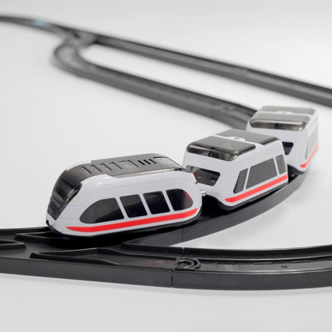 • umfangreiche technische Ausstattung: elektromagnetische Waggonkupplungen, Farb-, Geschwindigkeits- und Beschleunigungssensoren, LED-Leuchten, integrierter Lautsprecher, 32-Bit-Mikrokontroller und 64 MB Flash-Speicher