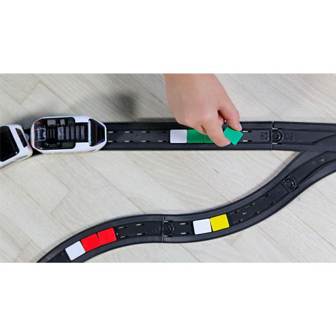 • umfangreiches Klassen-Set: 4 smarte Loks, 4 Waggons, 100 Gleise, 60 Farbkodier-Plättchen, App-Unterstützung und mehr