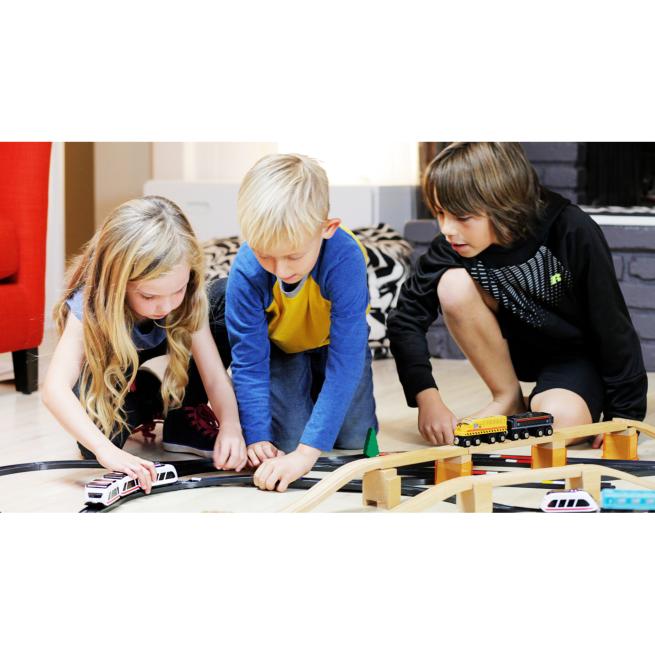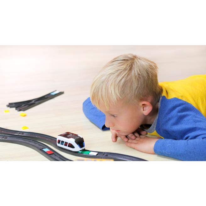 Tipp: Für den Einstieg steht Ihnen ebenfalls das Smart-Train-Starter-Set (Art.-Nr. 34317) zur Verfügung. Oder möchten Sie Ihr Klassenset erweitern? Dann sehen Sie sich am besten das Schienenset an (Art.-Nr. 34318). Übrigens: Smart Train ist mit zahlreichen Holzeisenbahn-Systemen kompatibel. Zur Verbindung der Smart-Train-Schienen mit denjenigen Ihrer geeigneten Holzeisenbahn benötigen Sie lediglich das separat erhältliche Schienen-Adapterstück (Art.-Nr. 34319). Sie finden es ebenfalls hier bei uns im Shop!
