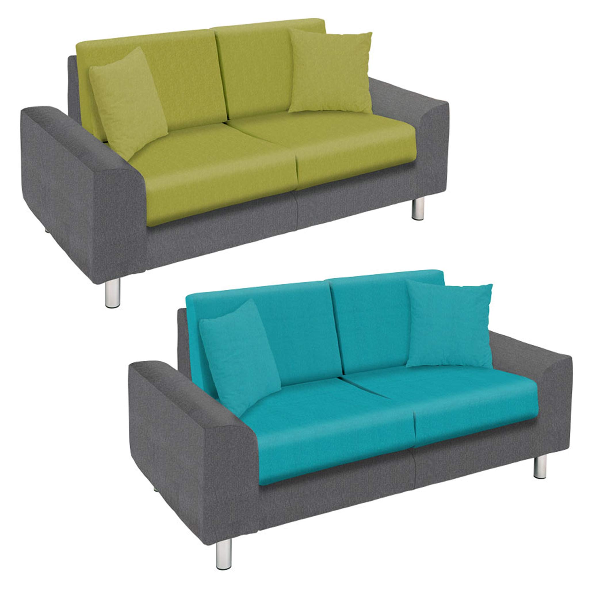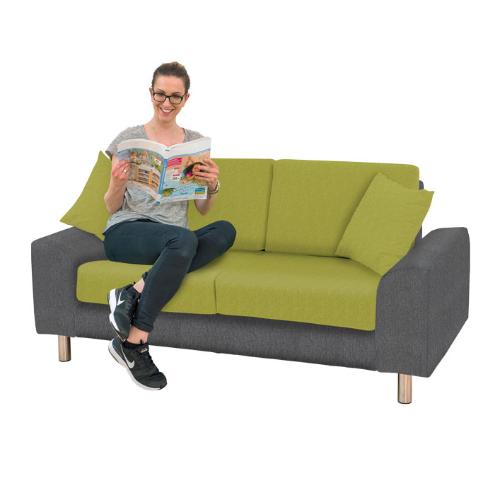Ein gemütliches Sofa für eine entspannte Pause. Die extrabreite Armlehne lässt sich auch prima als Kopflehne nutzen. Das zweifarbige Design strahlt eine angenehm frische Atmosphäre aus. Der Microfaser-Bezug macht das Sofa besonders pflegeleicht. Die Bezüge von Rücken- und Sitzkissen sind abnehmbar und bei 30 °C waschbar. Lieferung mit Deko-Kissen.