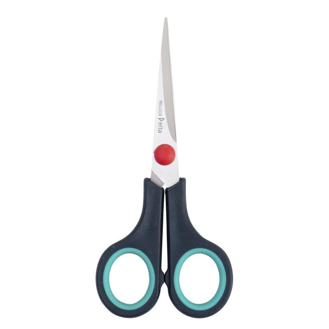 Die Finger werden durch die gummierte Griffzone auch bei langem Schneiden geschont. Die Schere liegt angenehm in der Hand. Mit Schraube zum Nachjustieren.