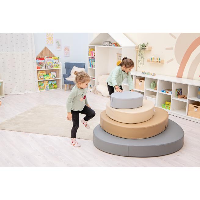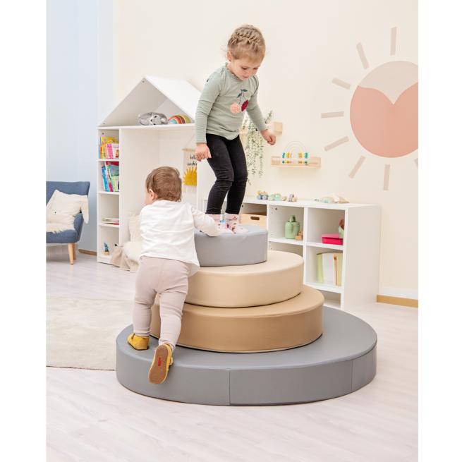 Softelemente sind ein Must-have in Krippen und Kindergärten als Unterstützung für die Entwicklung der kindlichen sensomotorischen Fähigkeiten. Dieses 4er-Set in sanften Naturtönen und schön gerundeten Formen inspiriert nicht nur zum Toben und Klettern, sondern auch zum gemütlichen Ausruhen. Je nach Bedarf können Sie die Elemente stapeln oder einzeln nutzen.