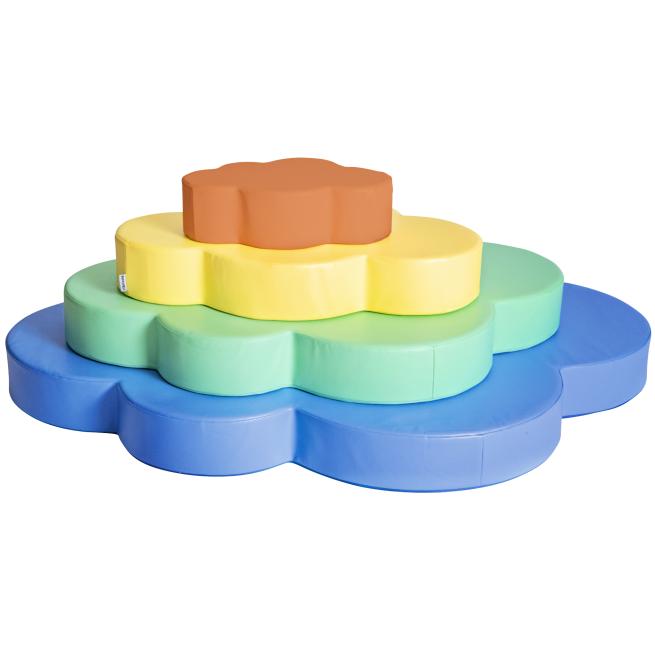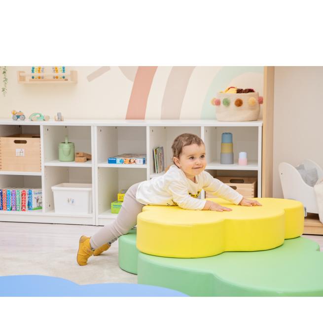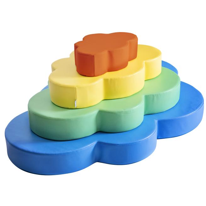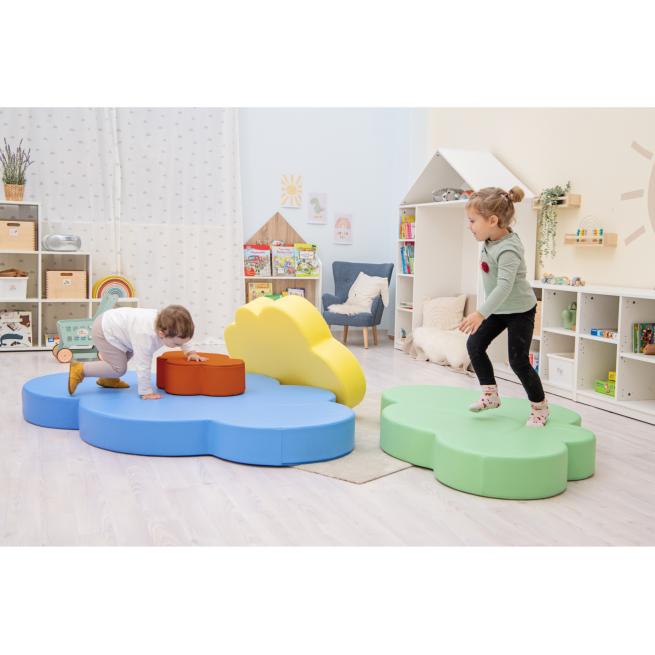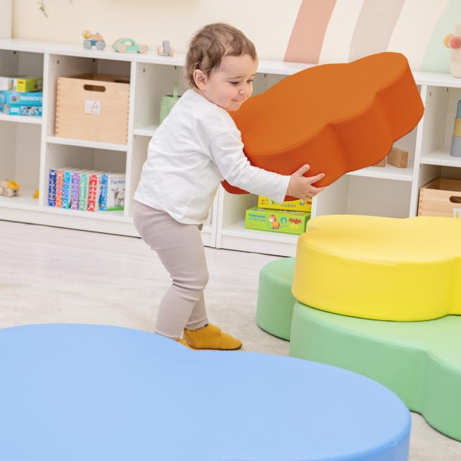 Softelemente sind ein Must-have in Krippen und Kindergärten als Unterstützung für die Entwicklung der kindlichen sensomotorischen Fähigkeiten. Die weichen, farbenfrohen Wolken laden zum Stapeln, Krabbeln, Klettern und Toben ein und lassen sich auch als Turn- oder Ruhematte nutzen.