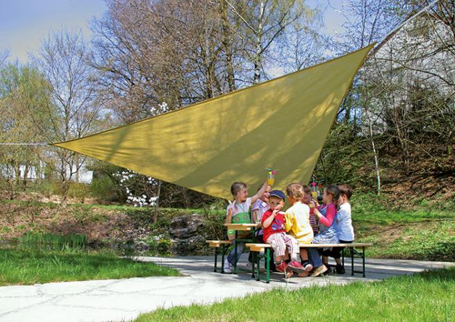 Dank dieses Sonnensegels können Sie auch an sonnigen Tagen bedenkenlos draußen spielen und sitzen. Das leichte, robuste Material ist ideal für den täglichen Einsatz und bietet einen UV-Schutz von 90 %. Das Segel ist rundum eingesäumt und aus 100% Polyethylen.