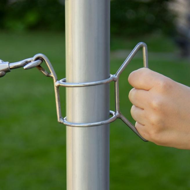 Tipp: Bestellen Sie das passende Befestigungsmaterial direkt mit: Stahlmast, Spannschraube oder Karabinerhaken.