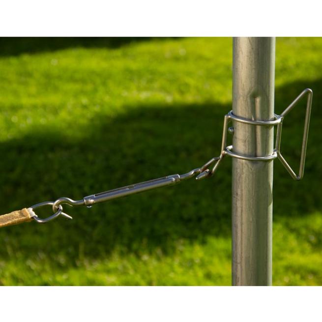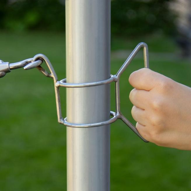 Tipp: Bestellen Sie das passende Befestigungsmaterial direkt: Stahlmast, Spannschraube oder Karabinerhaken.