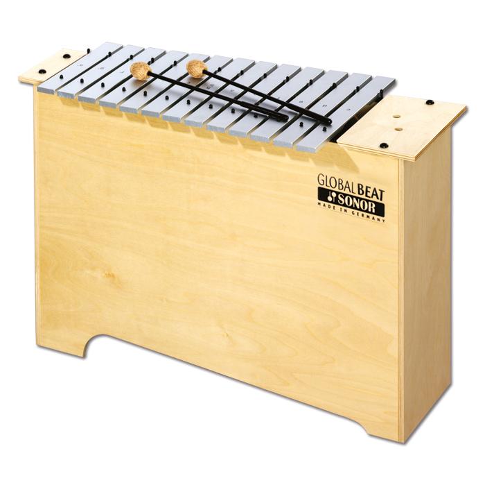 Die Metallophone der Global Beat Serie zeichnen sich durch die hochwertigen speziallackierten Metallklangplatten und die sechs Kammern im Resonanzkasten aus gesperrtem Birkenholz aus. Alle Töne sind als Buchstaben auf die Klangstäbe gedruckt, c – a¹ mit fis, b und fis¹. Die Metallophone verfügen über eine Oberton-Stimmung bis a bzw. eine Grundton-Stimmung ab b.