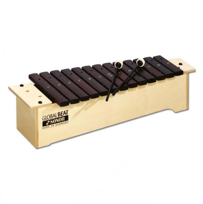 Die Xylophone der Global Beat Serie zeichnen sich durch die hochwertigen Klangstäbe aus Sucupiraholz und die sechs Kammern im Resonanzkasten aus gesperrtem Birkenholz aus. Alle Töne sind als Buchstaben auf die Klangstäbe gedruckt: c² – a³ mit fis², b² und fis³.