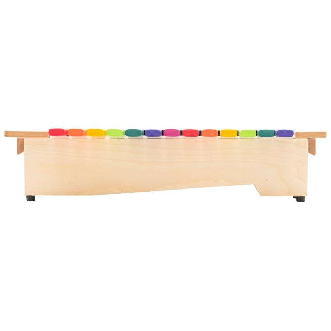 Dieses Sopran-Xylophon bringt Boomwhackers®-Farben in den Musikunterricht. 16 farbig lackierte Fiberglas-Klangplatten sind diatonisch von c2 bis a3 abgestimmt und greifen das Boomwhackers®-Farbsystem auf. Aufgedruckte Tonbezeichnungen erleichtern das Spiel ohne Notenkenntnisse. Kinder finden schnell Töne, improvisieren Melodien und begleiten Lieder – solo, im Duo oder im Klassenensemble.
