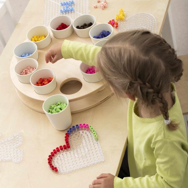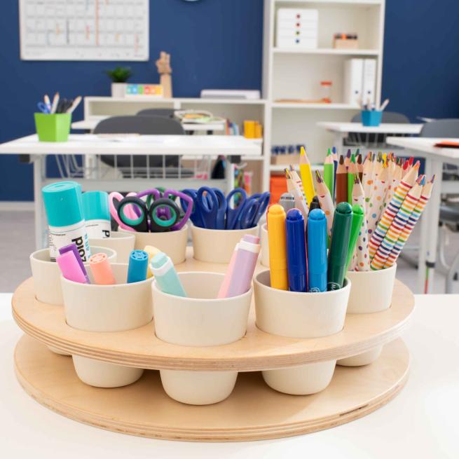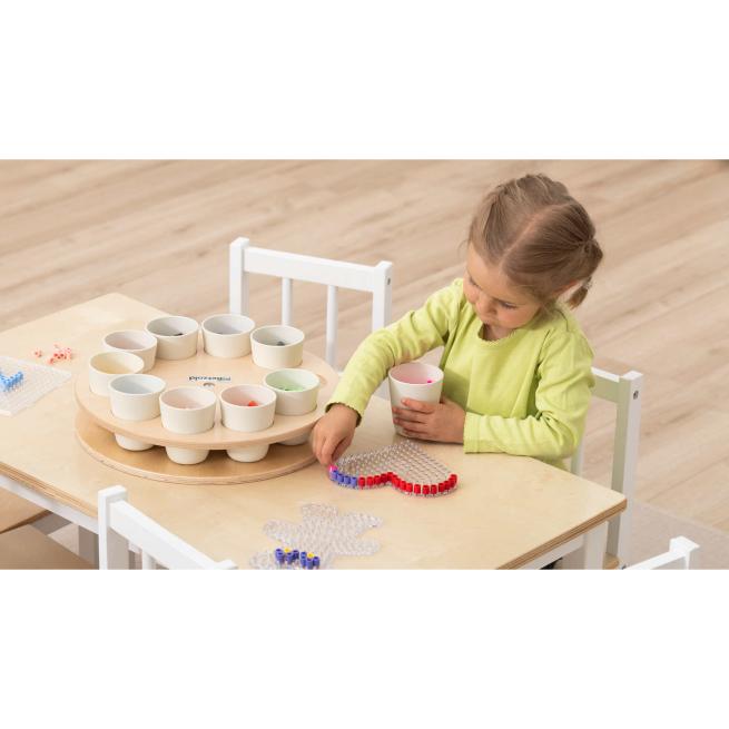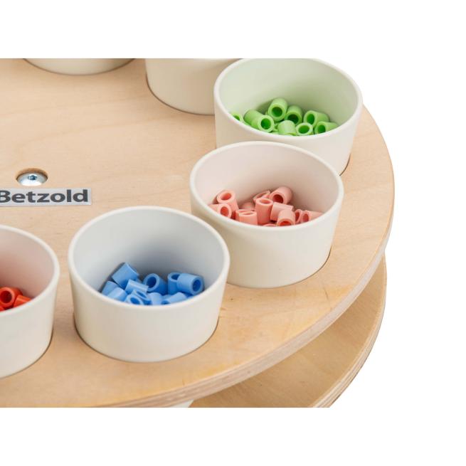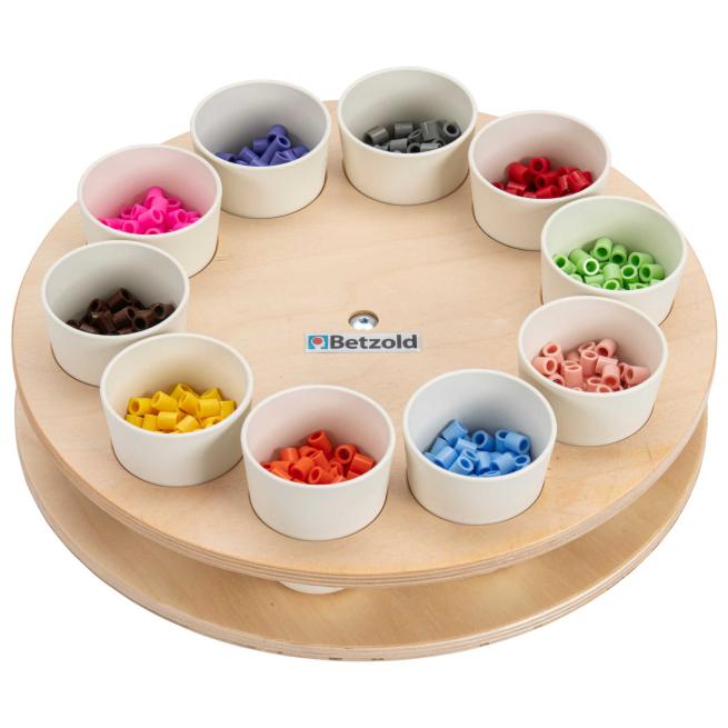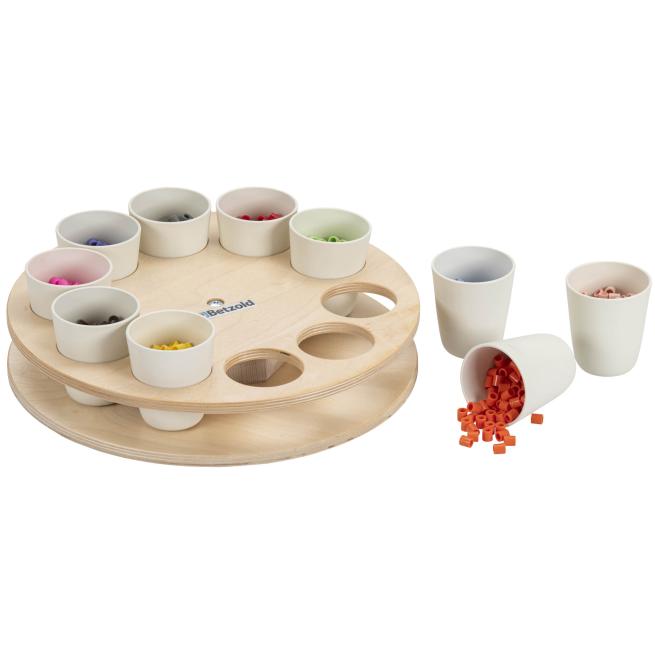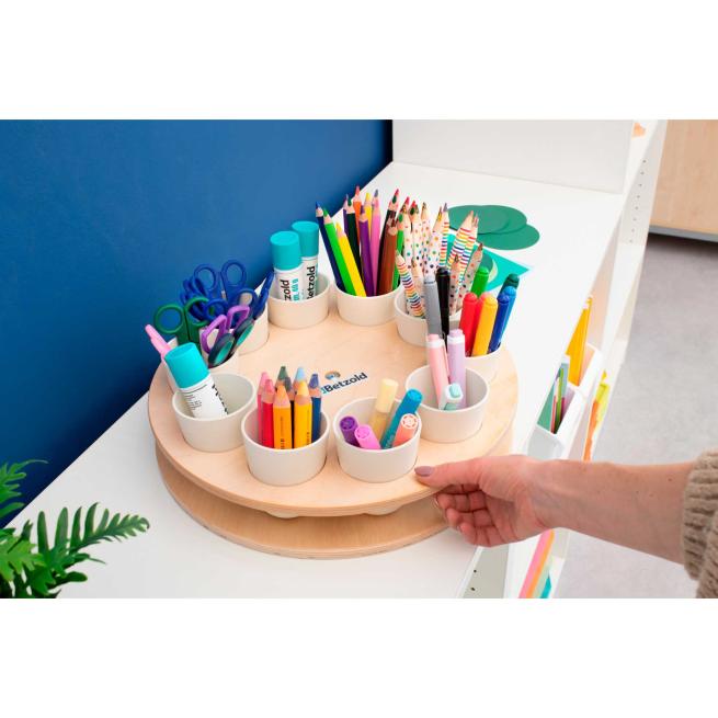 Strukturieren Sie mit dem Sortierrondell kreative Phasen in Kita und Schule mit einem Handgriff. Das Rondell mit 10 fest stehenden Bechern bringt z. B. Perlen, Stifte, Bastelmaterial und kleine Spielobjekte übersichtlich in Reichweite. In der Tischmitte aufgestellt, drehen die Kinder jeden Materialbecher einfach je nach Bedarf zu sich. Optimal für Stationenlernen, Werkstattarbeit und Freispiel.