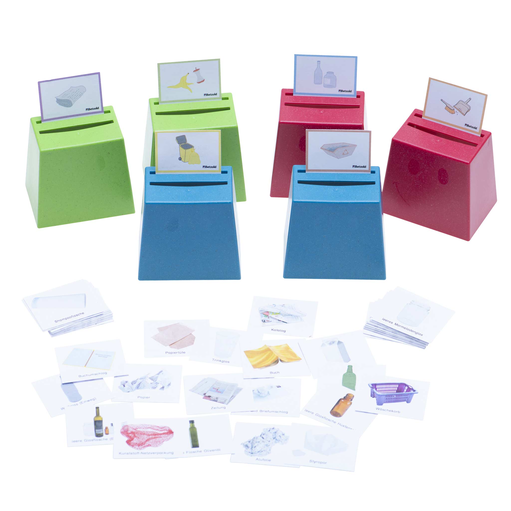 Mithilfe der Quizzerkarten des Sortierspiels Mülltrennung machen sich Kinder spielend vertraut mit dem Thema Recycling. Insbesondere die korrekte Trennung von Müll spielt dabei eine tragende Rolle, damit Wertstoffe optimal wiederverwendet werden können. Das Sortierspiel ist bestens geeignet fürs Stationenlernen oder für die Freiarbeit.