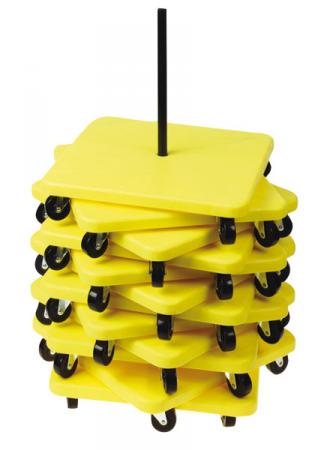 Bis zu 15 Rollbretter können mit dieser praktischen Hilfe gestapelt werden. Hierzu wird die Stange einfach in das Loch des untersten Brettes geschraubt - fertig ist der Rollbrett-Aufbewahrungswagen.