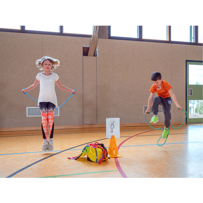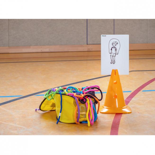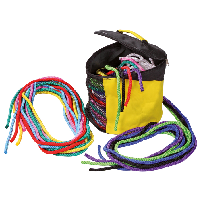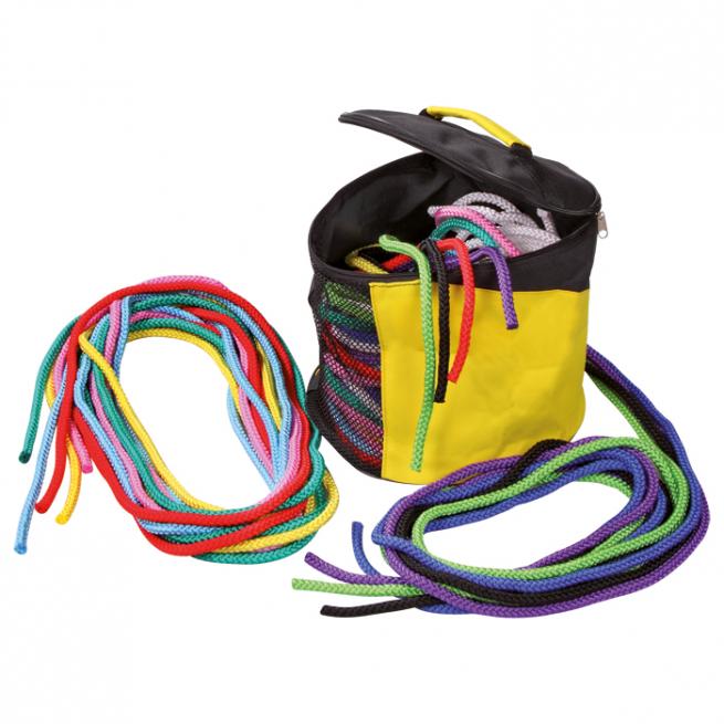 Mit diesem tollen Set erhalten Sie 20 Springseile (Länge: je 3 m) in 10 leuchtenden Farben für Spiel und Sport. Beim Seilspringen trainieren Ihre Schüler/innen und Kinder Ausdauer, Fitness und Koordination und zusätzlich bringt es viel Spaß. Alle Seile finden in der praktischen Aufbewahrungstasche (100% Nylon) Platz. Ein Netzeinsatz sorgt für die optimale Belüftung der Tasche.
