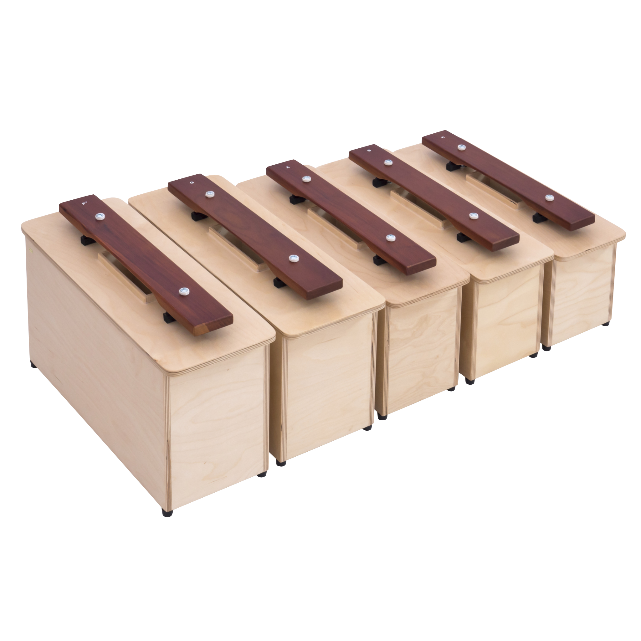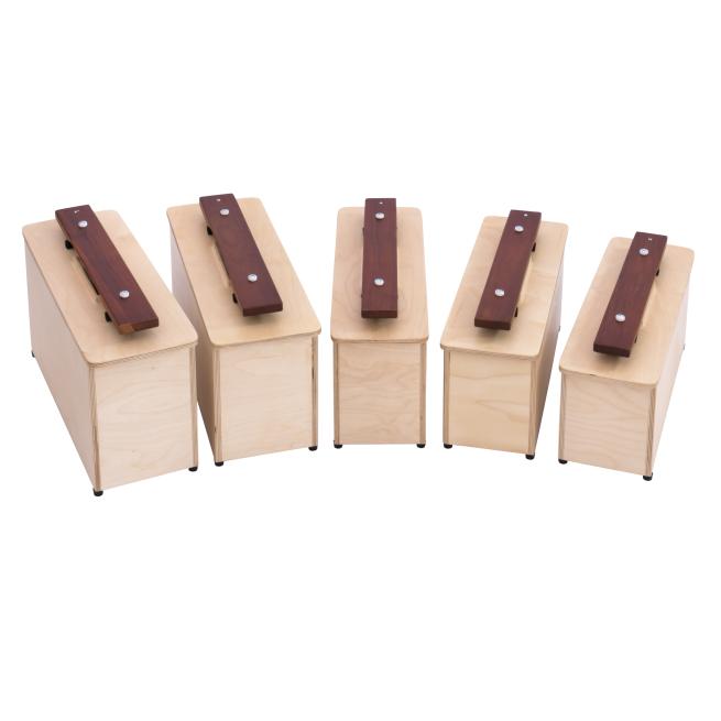 Die Klangstäbe aus Palisander, die Resonanzkästen mit eingebautem Klangkanal aus Kiefernholz – die Kontrabass-Klangbausteine bieten ein ausgezeichnetes Preis-Leistungsverhältnis. Beim Anschlagen des Palisander-Klangstabs entstehen Resonanzwellen, die umgehend durch den Klangkanal in den Resonanzkörper geleitet werden und so einen tiefen, klaren und warmen Ton entstehen lassen.