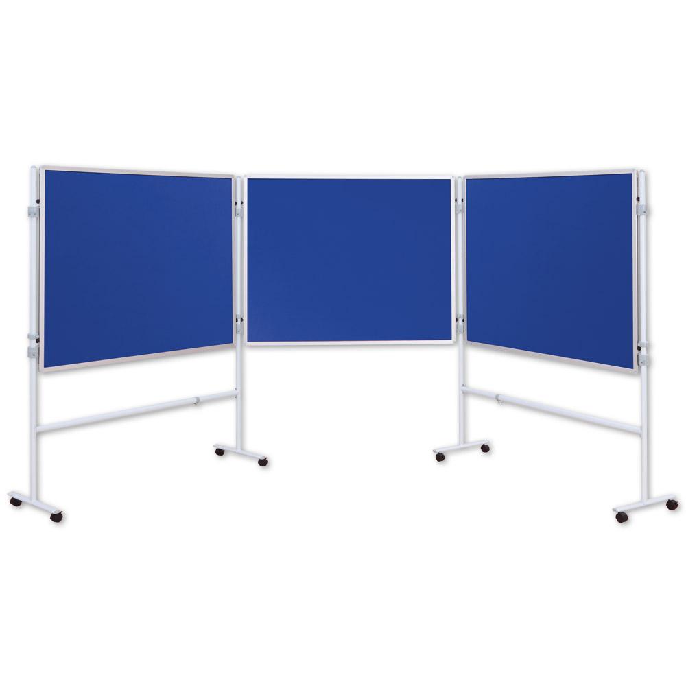 Bestehend aus 3 Tafeln (120 x 150 cm, Tafeloberfläche blau) und 2 fahrbaren Stativen.