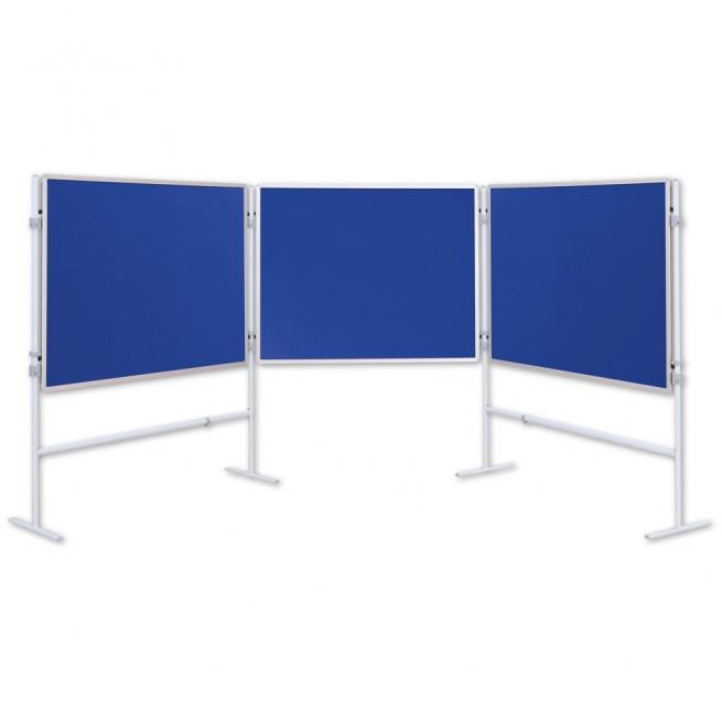 Bestehend aus 3 Tafeln (120 x 150 cm, Tafeloberfläche blau) und 4-T-Fuß Stativen.