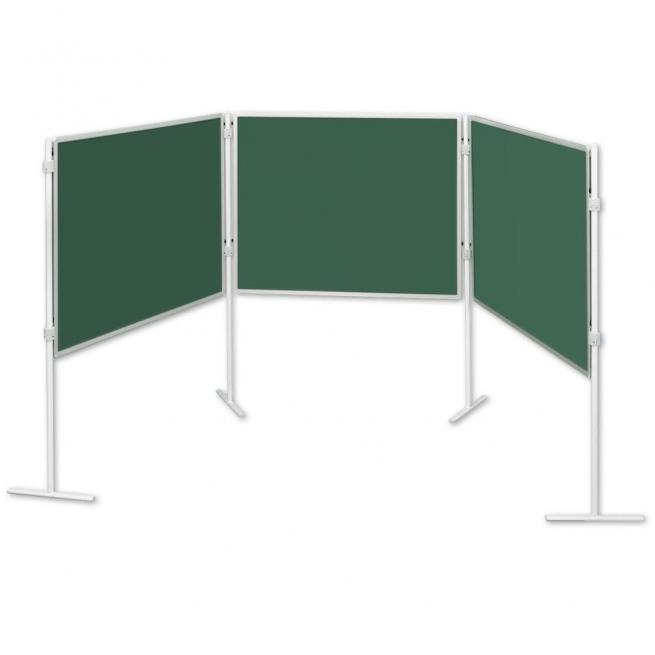 Bestehend aus 3 Tafeln (120 x 150 cm, Tafeloberfläche grün) und 4-T-Fuß Stativen.