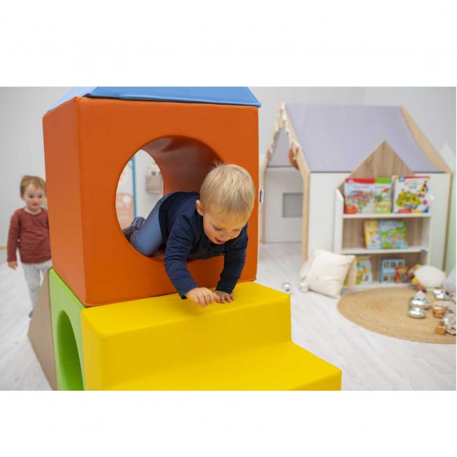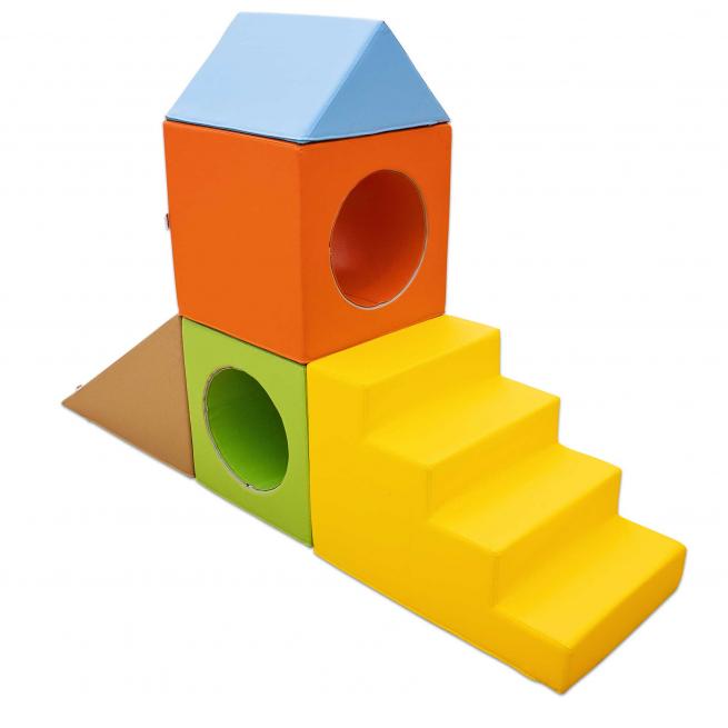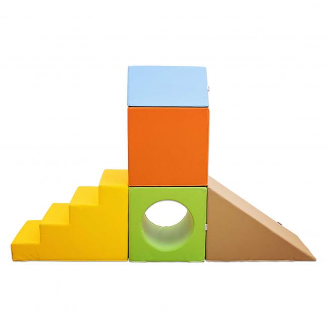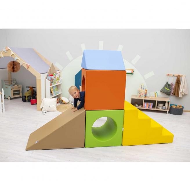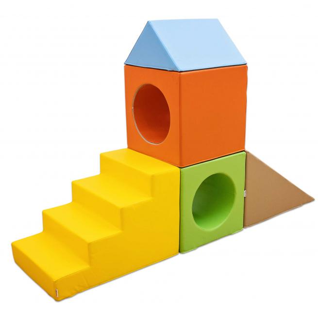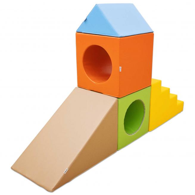 Bauen Sie Ihren Kindern doch mal eine eigene Spiel- und Krabbelburg. Die 5 farbenfrohen Einzel-Elemente verbinden Sie einfach und sicher mit den angebrachten, starken Klettverschlüssen. So bleibt die Burg beim Bespielen fest zusammen. Die rutschfeste Unterseite gibt ihr zusätzlichen Halt.