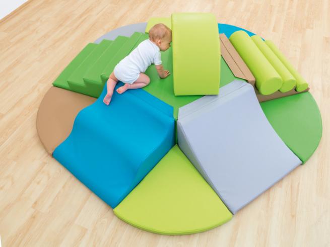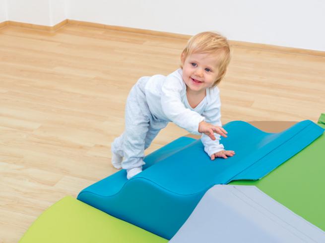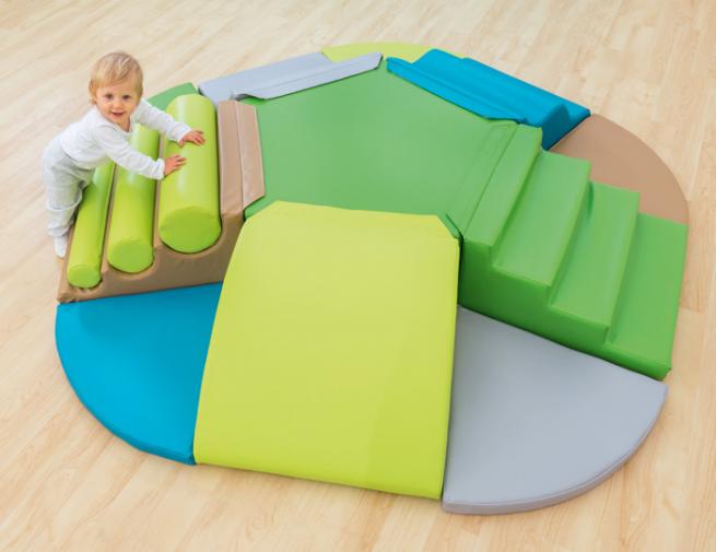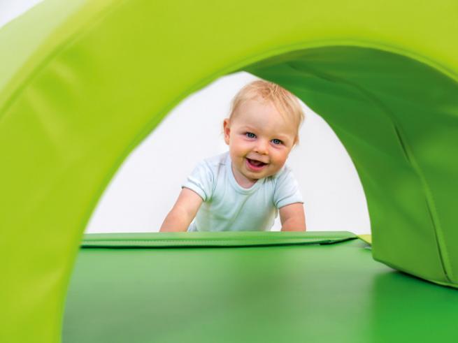 Eine spannende Krabbellandschaft für Ihre Jüngsten. Beim Klettern und Erkunden der Spielinsel mit Tunnel sammeln Ihre kleinen Krabbler spielerisch Körpererfahrung mit verschiedenen Bewegungsweisen. Die unterschiedlichen Formen, Farben und Höhen der Elemente wecken die Unternehmungslust und fördern sensorische Fähigkeiten. Optimal für Ihren Krippenraum. Feucht abwischbar.