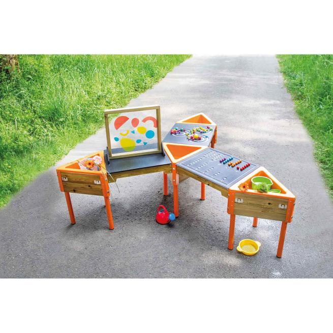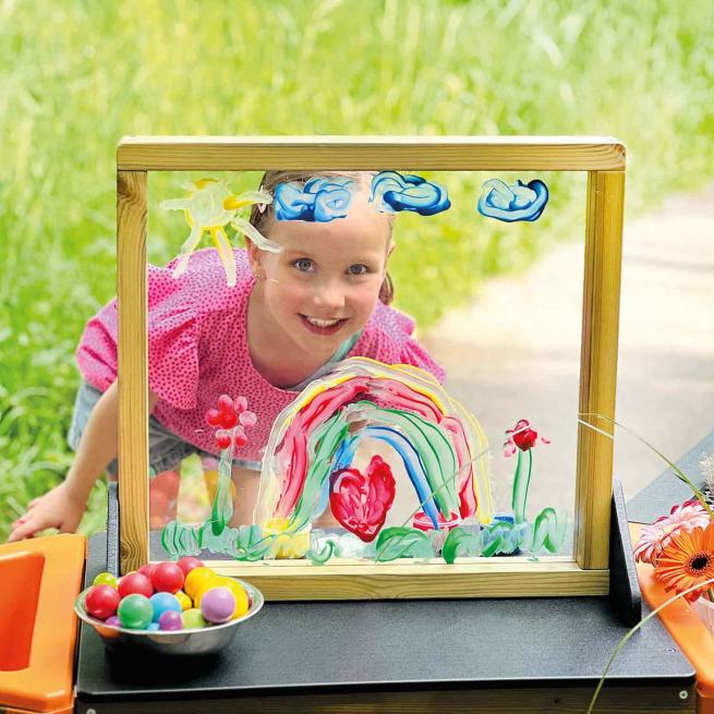 Ein Spielboard aus der Activity Table-Reihe von beleduc: Das Spielboard mit dem "Malrahmen"-Aufsatz ist eine tolle Erweiterung, auf der Kinder mit Fingerfarbe oder Matsch malen können. Mit diesem Zubehör werden Fensterbilder nach draußen in den Garten verlagert. Wenn zwei Kinder sich gegenübersitzen, können sie versuchen, gegenseitig ihre Umrisse zu zeichnen. Der Fantasie sind dabei keine Grenzen gesetzt! Das Spielboard kann einfach zwischen zwei Spieltische für Aktivitäten eingespannt werden. Ab 3 Jahren.Gewicht: 5,5 kg