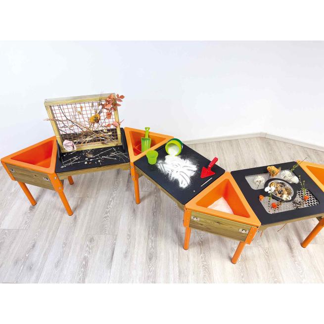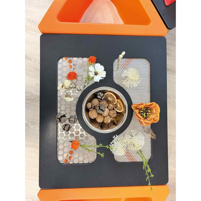 Ein Spielboard aus der Activity Table-Reihe von beleduc: Das Spielboard "Siebe und Schüssel" umfasst zwei Siebe mit verschiedenen Lochgrößen sowie eine Schüssel, die sich ideal für Sand, Wasser, Matsch, Murmeln und vieles mehr eignet. Ob die Kinder aktiv sieben oder kreativ gestalten möchten – dieses Spielboard verspricht jede Menge Spaß! Das Spielboard kann einfach zwischen zwei Spieltische für Aktivitäten eingespannt werden. Ab 3 Jahren.