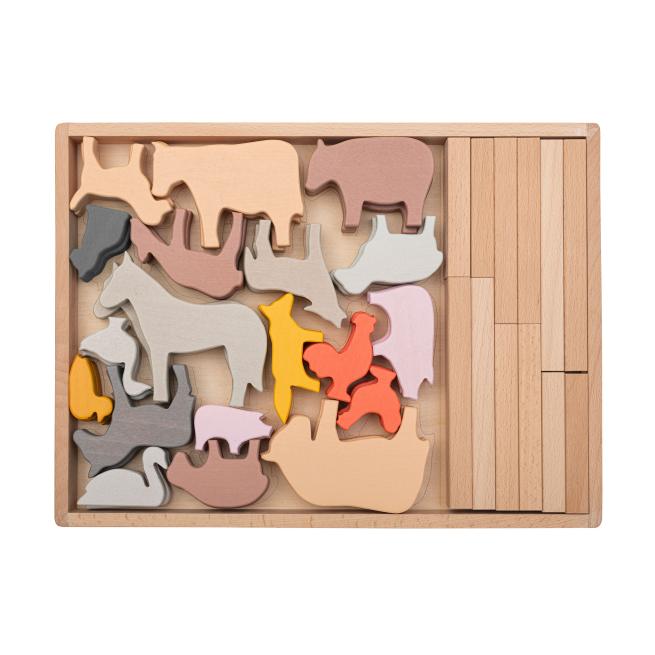 1 Lade Tiere und Zäune (50 Bausteine, darunter 38 Tiere)