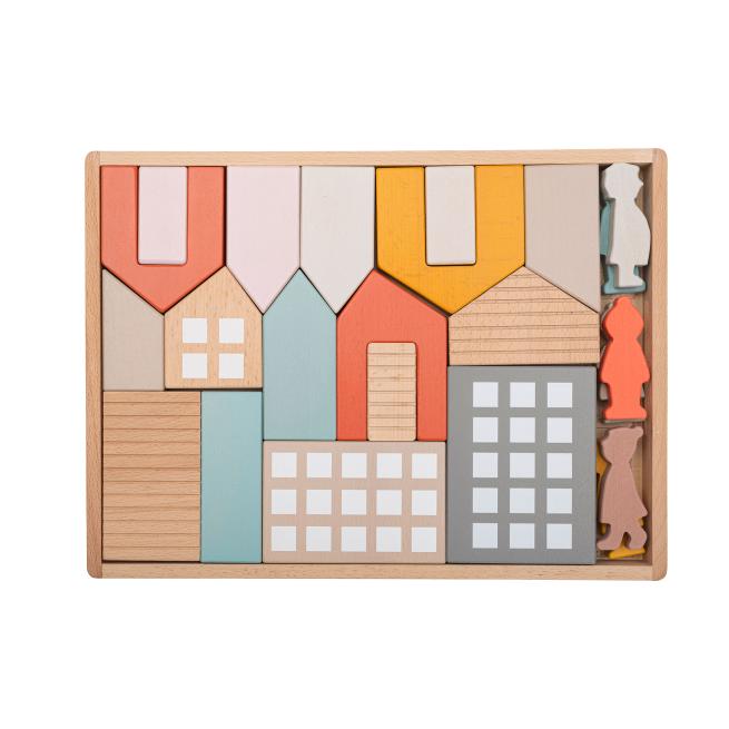 1 Lade Häuser und Menschen (23 Bausteine, darunter 6 Menschen)