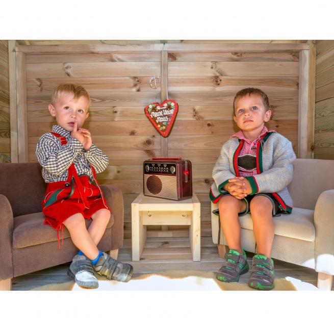 Bitte um das Spielhaus herum einen Sicherheitsabstand von 2 m einhalten.